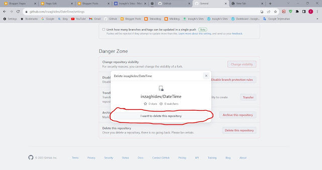 Setelah itu, klik Tombol "Delete this Repository". Kemudian, klik "I want to Delete the Repository".